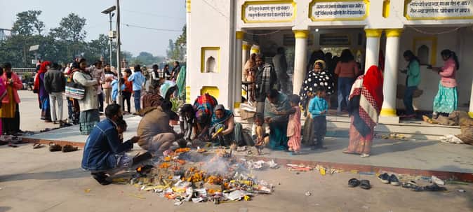 कबीर चौरा पर खिचड़ी चढ़ाने के बाद पूजा अर्चन करते भक्त-संवाद