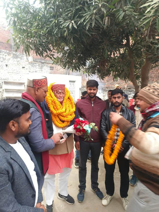 धर्मसिंहवा में भाजपा राष्ट्रीय परिषद के सदस्य का स्वागत करते कार्यकर्ता-स्रोत कार्यकर्ता