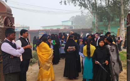दुधारा स्थित एक केंद्र पर परीक्षा देने जाती छात्राएं-स्रोत कॉलेज