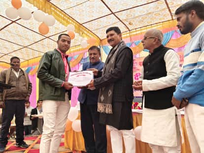 पालीटेक्निक काॅलेज में दीक्षांत समारोह में छात्र को सम्मानित करते अतिथि-स्रोत कॉलेज