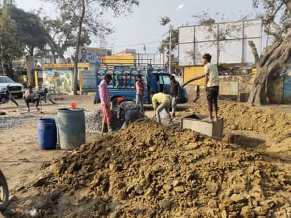 Sant Kabir Nagar News: सेमरियावां ब्लाॅक परिसर में ध्वजा स्तंभ निर्माण कार्य तेज