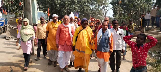 बेलहर कला में निकाली गई कलश यात्रा में शामिल लोग। संवाद