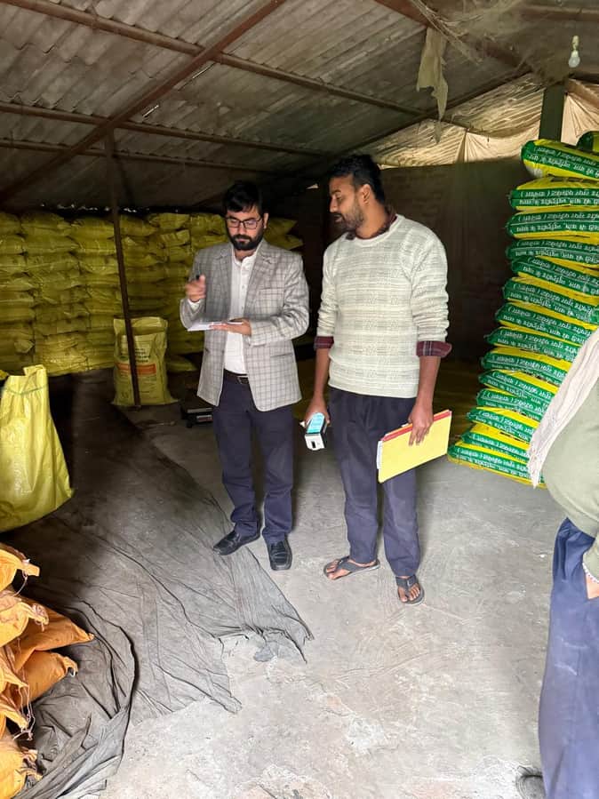उर्वरक की दुकान की जांच करते जिला कृषि अधिकारी-स्रोत कृषि अधिकारी