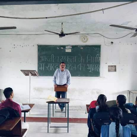 एचआरपीजी कॉलेज में सरदार बल्लभ भाई पटेल की जयंती से पूर्व आयोजित संगोष्ठी को संबोधित करते वक्त