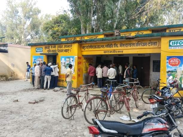 साधन सहकारी समिति पश्चिम टोला पर खाद वितरण के दौरान विवाद करते मनबढ़-स्रोत ग्रामीण