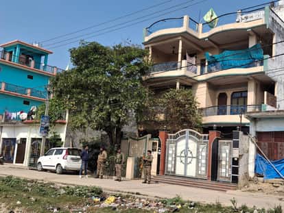 घर के बाहर तैनात सी आर पी के जवान। संवाद
