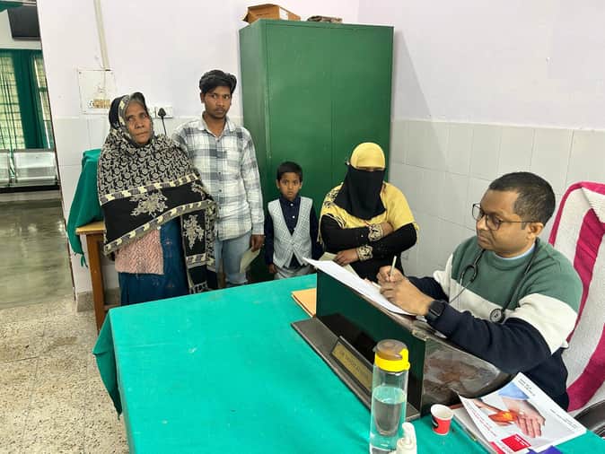 करमैनी प्राथमिक स्वास्थ्य केंद्र पर मरीजों को इलाज करते डॉ संजय कुमार।संवाद- फोटो : bishnah news