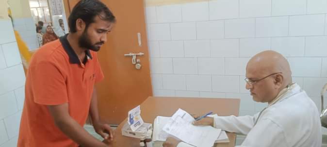 जिला अस्पताल में मरीजों को देखते हुए चिकित्सक। संवाद