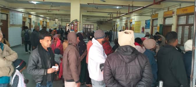 जिला अस्पताल की पैथालॉजी में लगी भीड़-संवाद