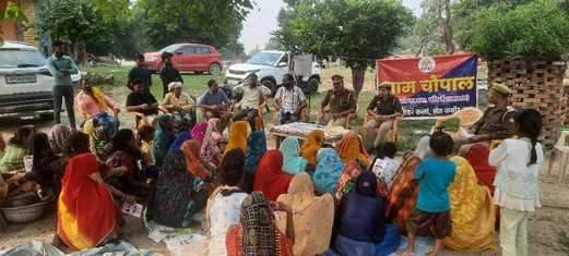 बेलहर पुलिस द्वारा महिलाओं की जनजागरुकता के लिए चलाये जा रहे अभियान के दौरान पुलिस टीम जानकारी