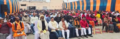 तिलहर के निजामगंज स्थित अग्रवाल धर्मशाला में आयोजित हिंदू स्वाभिमान सम्मेलन में उपस्थित लोग।