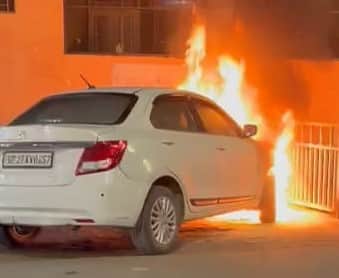 Shahjahanpur News: खड़ी कार में लगी आग, मची अफरा-तफरी