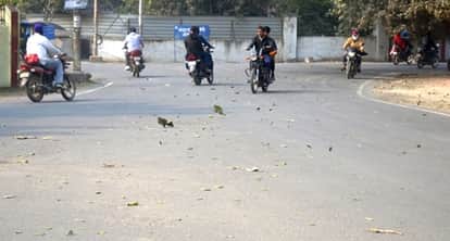 कैंट क्षेत्र में शुक्रवार को हवा चलने के दौरान निकलते लोग। संवाद