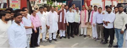 एसपी कार्यालय के बाहर मौजूद सपा पदाधिकारी व कार्यकर्ता। स्रोत : पार्टी