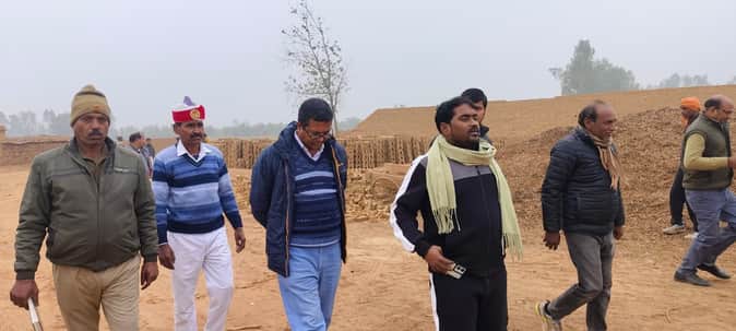 कांट क्षेत्र के एक ईंट भट्ठे पर जांच के लिए पहुंचे एडीएम वित्त एवं राजस्व अरविंद कुमार। स्रोत :