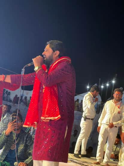 कांट में दुर्गा जागरण में भजन प्रस्तुत करते भजन गायक राम कुमार लक्खा। स्रोत: आयोजक