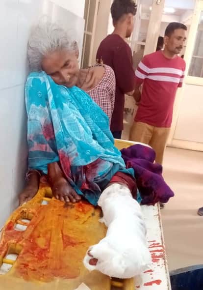 खुटार में टैंकर से घायल हुई गांव निपनिया की शांति देवी। संवाद