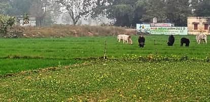 चांदपुर में फसल चर रहे गोवंशीय पशु। संवाद