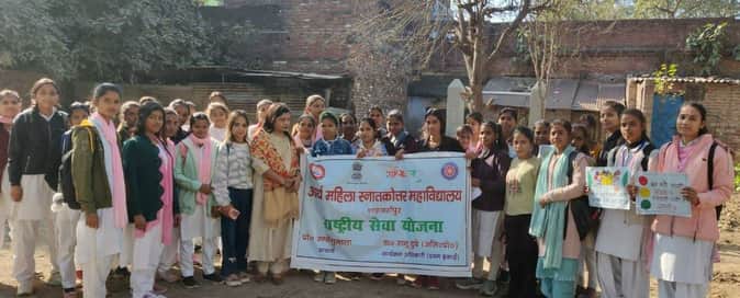 खिरनीबाग में जागरूकता रैली निकालतीं आर्य महिला डिग्री कॉललेज की एनएसएस की छात्राएं। स्रोत: कॉ