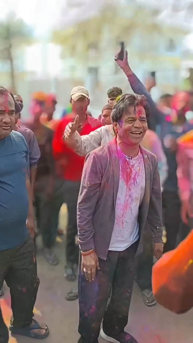अपने गांव में होली खेलते अभिनेता राजपाल यादव। स्रोत: वीडियो ग्रेब