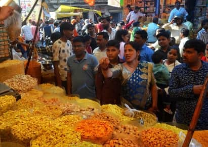 बहादुरगंज बाजार में नमकीन की खरीदारी करते लोग। संवाद