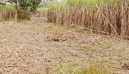 खुटार के गांव चांदपुर के पास खेत में मौजूद तेंदुआ। स्रोत : वीडियो ग्रैब