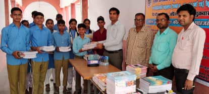 राजकीय इंटर कॉलेज, कांट में पुस्तके लेते छात्र। स्रोत : कॉलेज प्रबंधन
