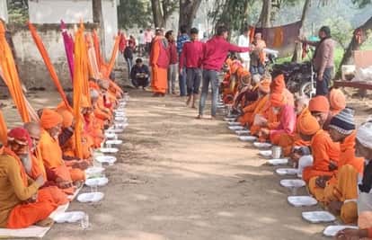 पुवायां के गांव नाहिल में स्वामी आत्मानंद के आश्रम पर भंडारे में शामिल दंडी स्वामी। संवाद