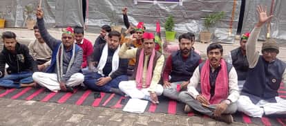 Shahjahanpur News: मांगें पूरी नहीं होने पर सपाइयों ने दिया धरना