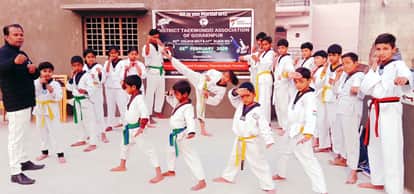 पुवायां में ताइक्वांडों टेस्ट में भाग लेते खिलाड़ी। संवाद
