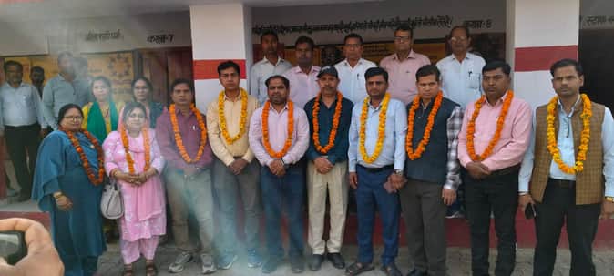 सिंधौली में उत्तर प्रदेश जूनियर हाईस्कूल शिक्षक संघ के मनोनीत पदाधिकारियों का फूल माला पहनाकर