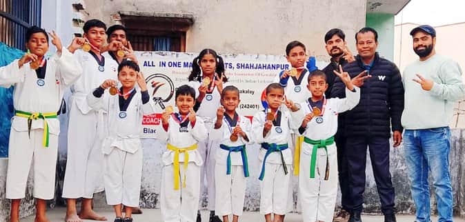 पुवायां के विजय सार्वजनिक पुस्तकालय में चल रहे ऑल इन वन मार्शल आर्ट ट्रेनिंग सेंटर के खिलाड़ियों ने गोला के बजाज पब्लिक स्कूल में इंडियन अमेक्राइन फाउंडेशन की ओर से 13 और 14 दिसंबर को आयोजित ताइक्वांडो प्रतियोगिता में भाग लिया था।