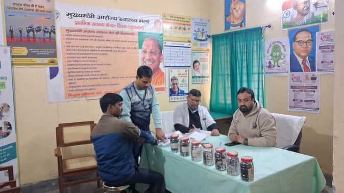 मीरानपुर कटरा में आरोग्य मेले में मरीज का परीक्षण करते डॉक्टर। संवाद