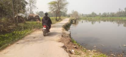 जैतीपुर में गौहावर-हिम्मतपुर मार्ग मकरंदपुर गांव के तालाब के पास तेजी से कट रहा है। संवाद