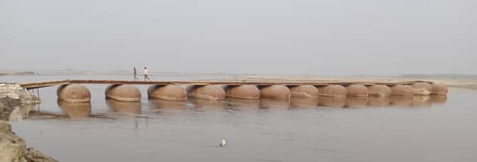 ठेकेदार ने हैदलपुर की ओर से काम शुरू कराकर सात पैंटून नदी में स्थिर कराए और उन्हें जोड़ने का काम भी कराया। शेष बचे तीन पैंटून लगवाने के बजाय गत सप्ताह काम बंद करा दिया। इस कारण नदी के दूसरे छोर पर मगटोरा की तरफ पुल की काफी जगह अब भी खाली है।