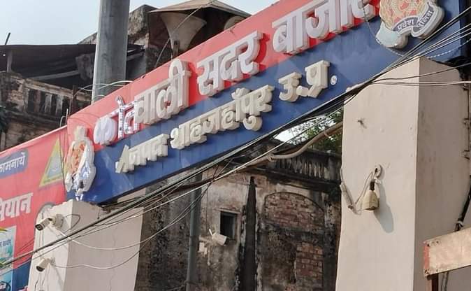 शाहजहांपुर में सदर बाजार थाने के बाहर टूटा पड़ा कैमरा। संवाद