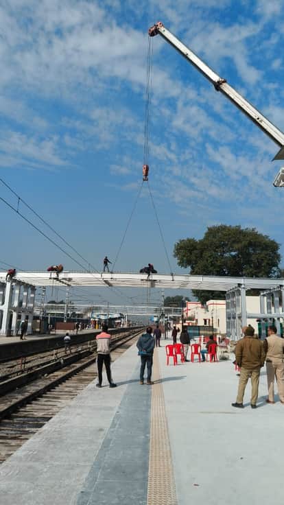 Shahjahanpur News: ओवरब्रिज पर गर्डर रखने का काम पूरा, दस मिनट देरी से आई वंदे भारत
