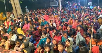 कुर्रिया कलां के ग्राम पल्हौरा स्थित शिवमंदिर पर आयोजित भागवत कथा में प्रसंग सुनते श्रद्धालु।