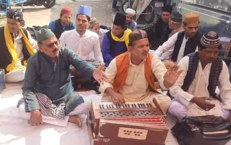 शाहजहांपुर में आस्ताना आलिया में कुल के बाद कव्वाली पेश करते कव्वाल। स्रोत: आयोजक