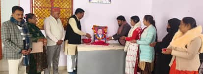 अधिवक्ता दौलतराम के चित्र के समक्ष पुष्प अर्पित करते लोग। स्रोत: संगठन