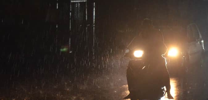 रविवार शाम को हुई तेज बारिश में भीगते जाते लोग। संवाद
