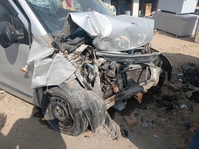 कांट में कार पुलिया से टकराई, कटरा में कार की टक्कर से बाइक सवार घायल