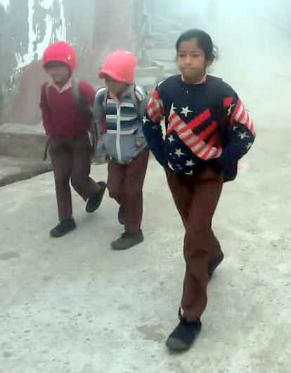 शामली क्षेत्र के गांव कुड़ाना में कोहरे में स्कूल जाते बच्चे । संवाद
