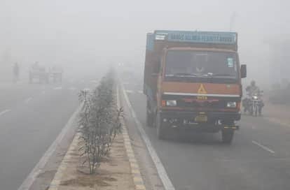 शामली में मेरठ करनाल मार्ग पर कोहरे में जाते वाहन । संवाद
