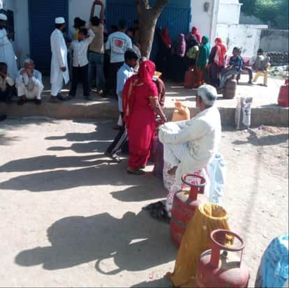 बाबरी में एजेंसी के बाहर गैस लेने के लिए कतार में खड़े उपभोक्ता। संवाद