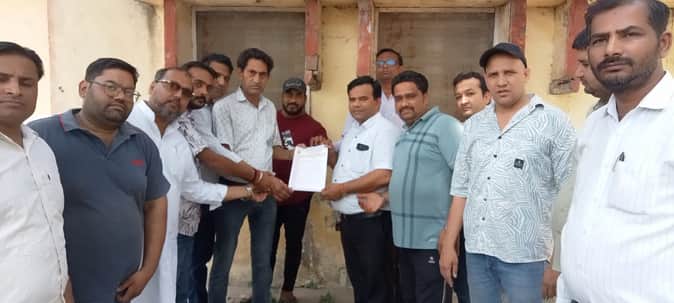 शामली में कैराना रोड पर अधिक्षण - अभियंता कार्यालय में ज्ञापन देते व्यापारी । संवाद