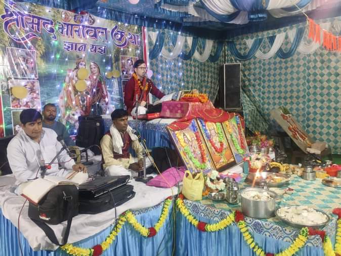 जलालाबाद के ग्राम नागल में श्रीमदभागवत कथा करते कथा व्यास विशाल । संवाद