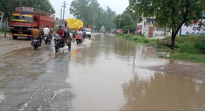 शामली में कैराना रोड पर बरसात के बाद जलभराव । संवाद