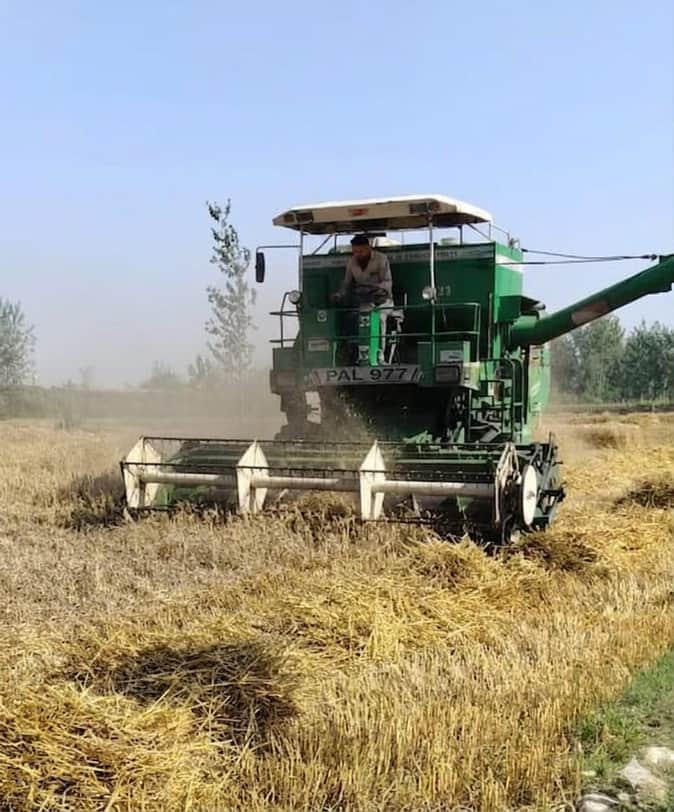 झिंझाना क्षेत्र में मशीन से गेहूं की कटाई करते हुए। संवाद