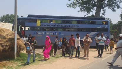 - फोटो : बाइक सवार को टक्कर मारने वाली बस को पकड़कर जांच करते उपनिरीक्षक व उतरते यात्री।